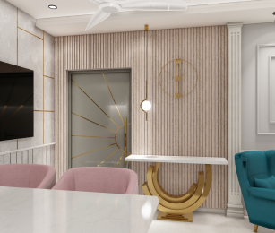 Nestled in Tirupur, renowned as the "Knitwear Capital of India," the site welcomes you into a meticulously crafted space where every detail makes a statement. The small living hall boasts an eye-catching wainscot detail on both walls, adding architectural interest, while intriguing French pillars contribute to the visual appeal.