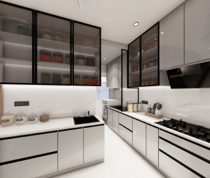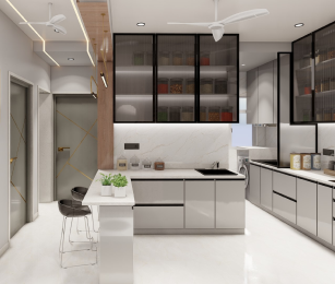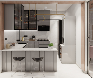 Guided by an eye-catching profile light detail, the residence unfolds seamlessly, revealing a kitchen that, despite its size, exudes simplicity and elegance. The chosen color scheme adds sophistication, and each element is curated for maximum functionality without sacrificing style.