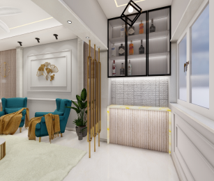 Nestled in Tirupur, renowned as the "Knitwear Capital of India," the site welcomes you into a meticulously crafted space where every detail makes a statement. The small living hall boasts an eye-catching wainscot detail on both walls, adding architectural interest, while intriguing French pillars contribute to the visual appeal.